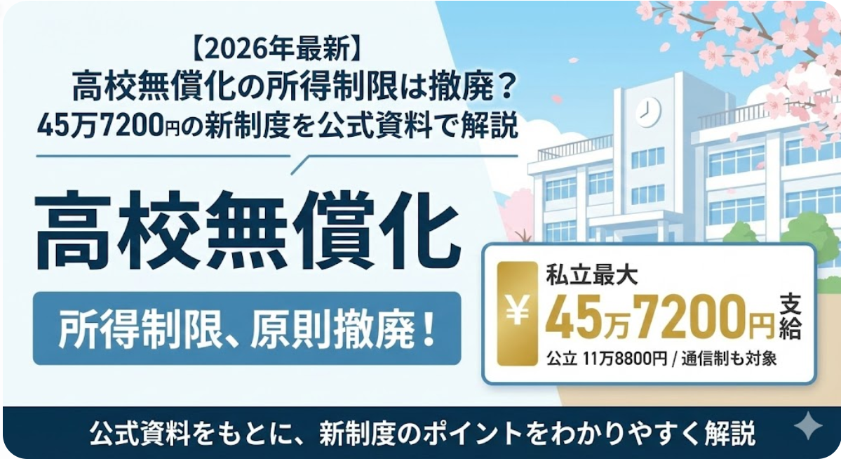 - 【2026年最新】高校無償化の所得制限は撤廃?45万7200円の新制度を公式資料で解説
